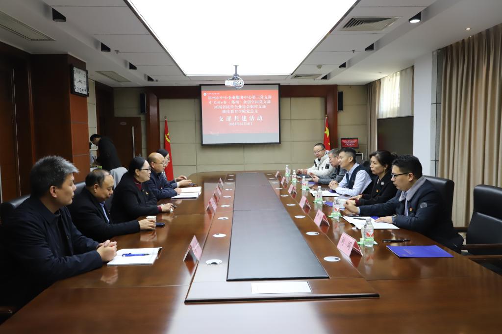 为携手赋能共促中小企业发展,郑州市中小企业服务中心副主任牛镇涛携中关村e谷(郑州)众创空间党支部、河南省民营企业协会临时支部一行来继续教育学院开展支部共建活动。继续教育学院、创新创业学院相关负责同志参加共建活动。